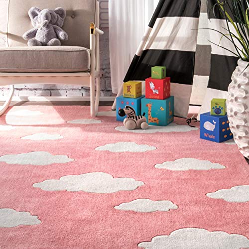Craquant, the white and pink smiling cloud carpet machine washable, it will be perfect for a decoration all tender in a girl's room: