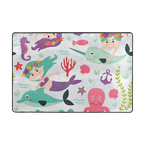 In this large purple carpet, the mermaid and the unicorn are united.