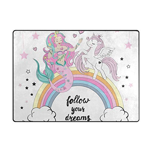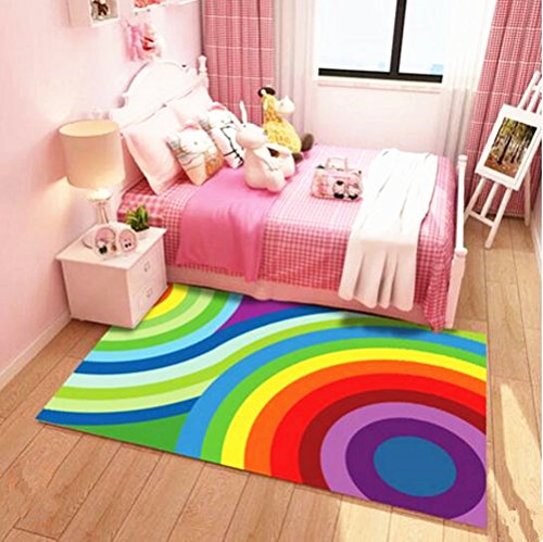 Or with this large rectangular rug with colorful rainbow background:
