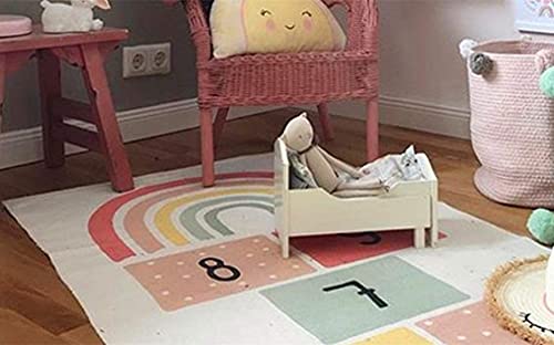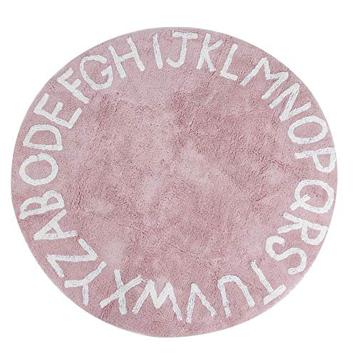 It is preferable to choose a cotton carpet because it is a natural material easy to maintain because it is washable. This is not negligible especially in a child's room. A cotton carpet also offers comfort, softness and durability. We love the pink carpet with white alphabet letters.