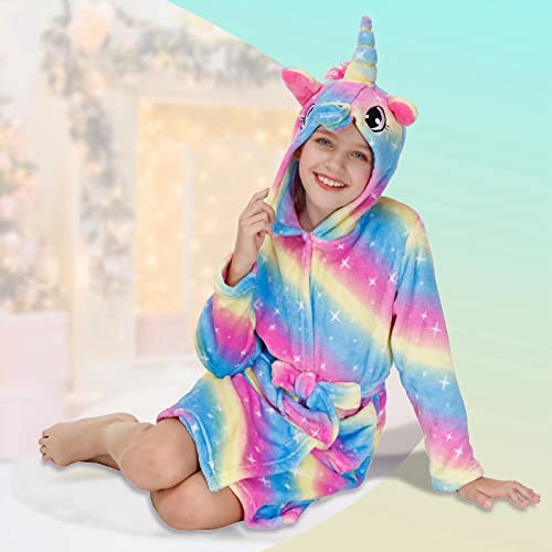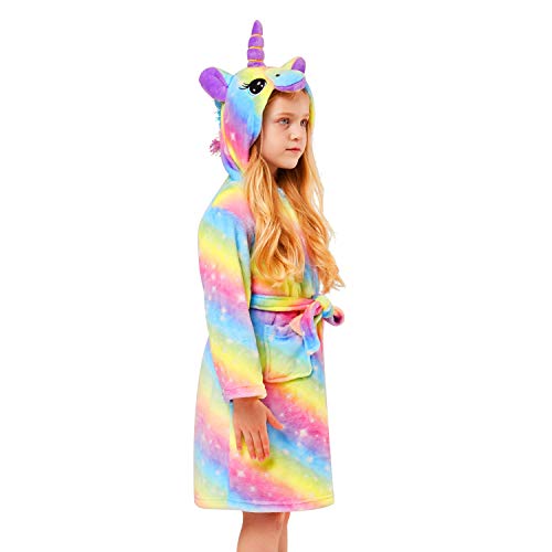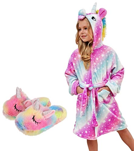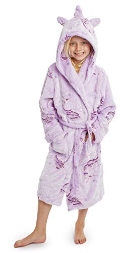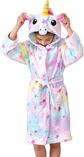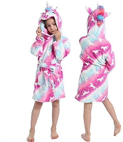 The unicorn bathrobe can be plain or patterned.