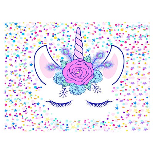 A soft unicorn rug with its round shape or oval unicorn rug and its purple background scattered with stars, rainbows and clouds... Perfect as a play area or to accommodate a small round table for drawing.