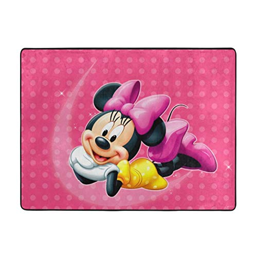 Some heroines remain unchallenged like the famous Minnie that little girls love. Represented here with a heart motif or on this other pink carpet with a pink polka dot motif, or finally encircled by a butterfly on this last plain pink carpet.
